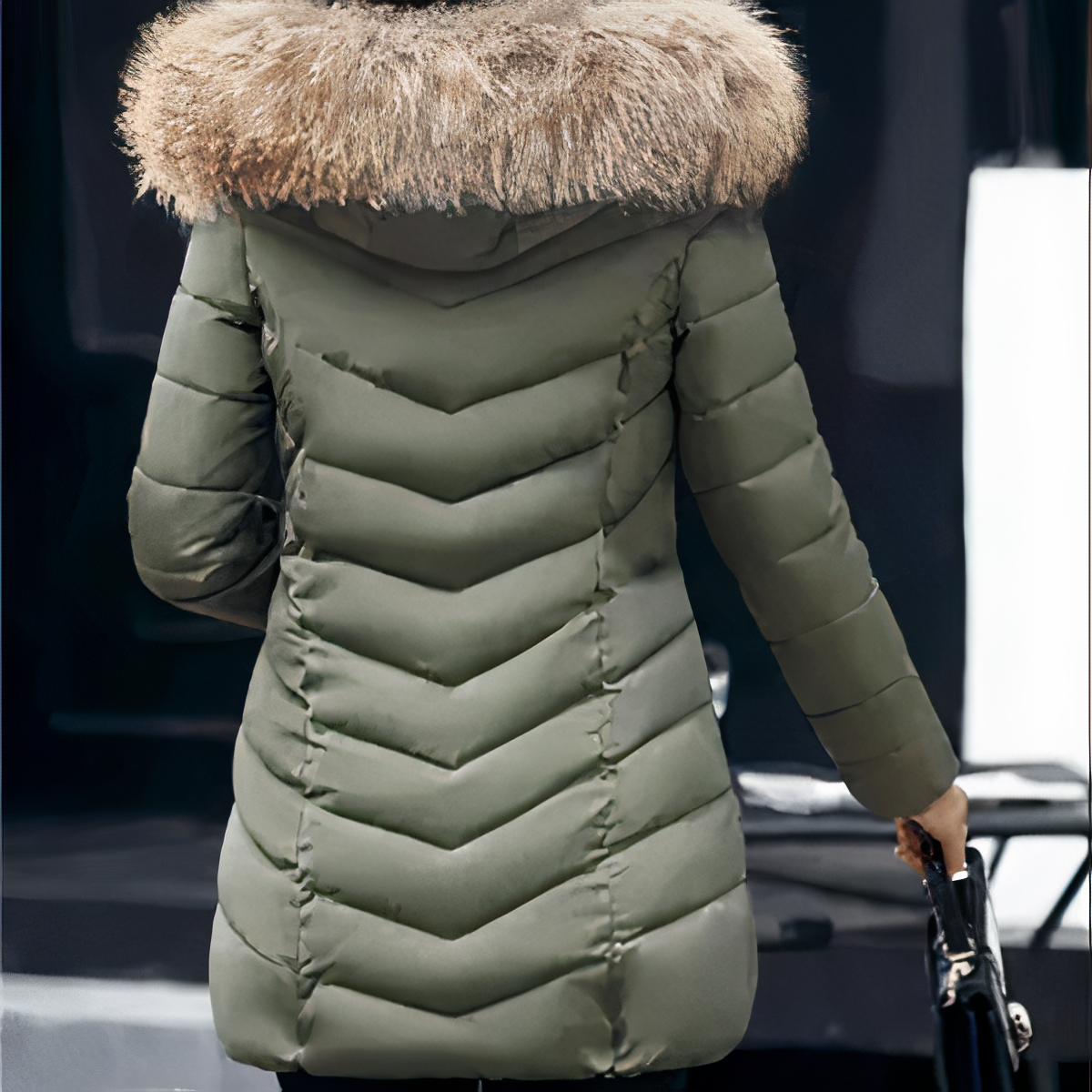 Unsere luxuriöse und bequeme Winterjacke ist die perfekte Wahl, um der kalten Jahreszeit mit Stil zu trotzen. Diese Winterjacke ist tailliert und passt sich jeder weiblichen Figur an.