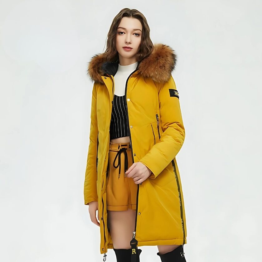 Unsere winddichte Daunenjacke mit großem Pelzkragen ist perfekt für den Winter! Sie ist aus einem dicken, wetterfesten Material gefertigt, das Sie den ganzen Tag über warm hält.