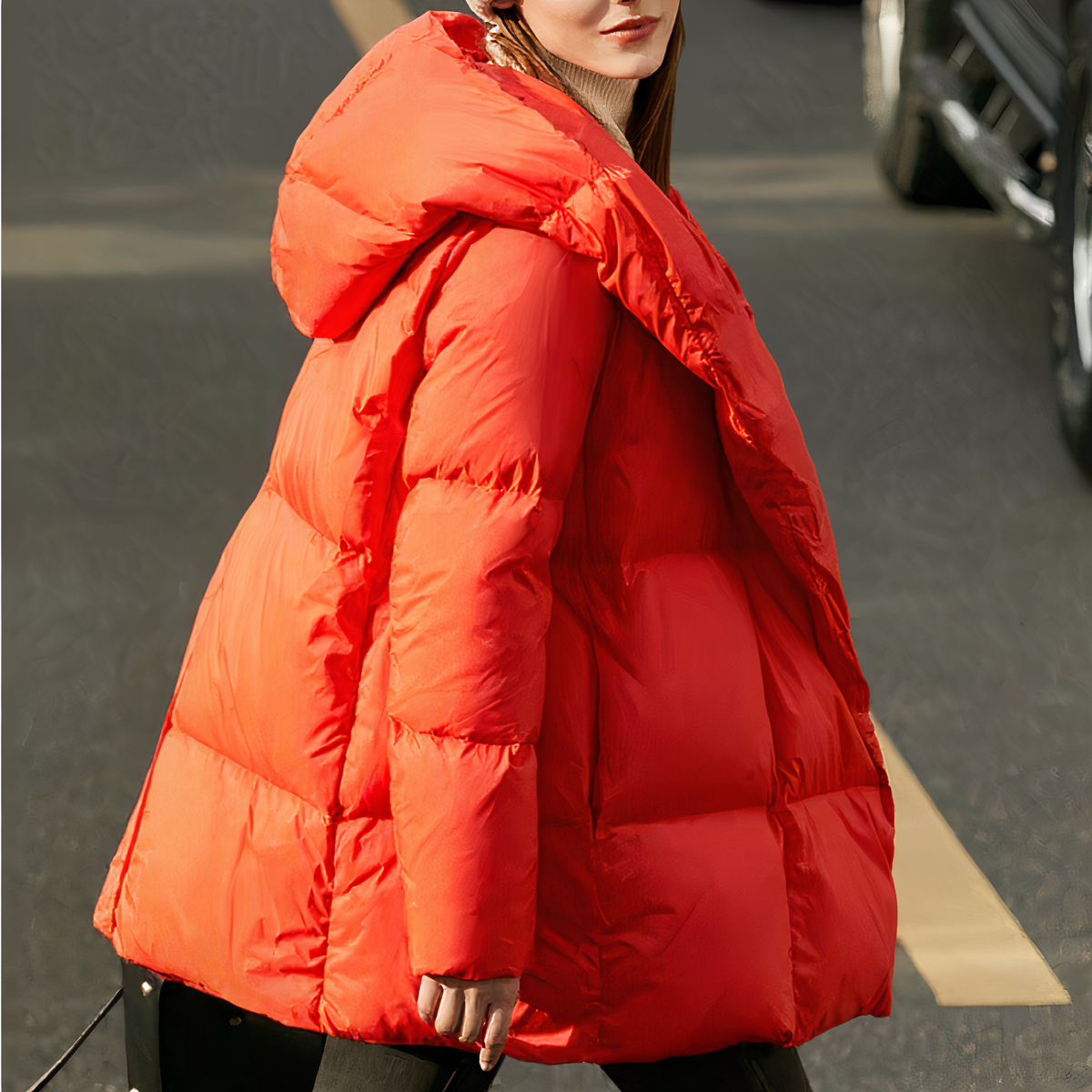 Rote, dicke Daunenjacke mit Kapuze für Frauen