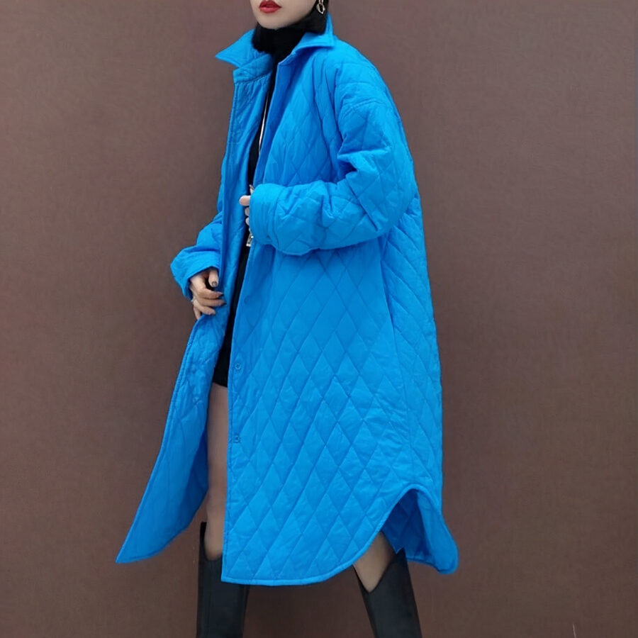 Unsere lange, gesteppte Schwangerschaftsjacke verleiht Ihrem Outfit einen Hauch von Eleganz und hält Sie gleichzeitig warm. Sie ist aus einem Stoff mit Stepp-Effekt gefertigt, während der lange, eng anliegende Schnitt Ihnen eine schlanke Silhouette verleiht.