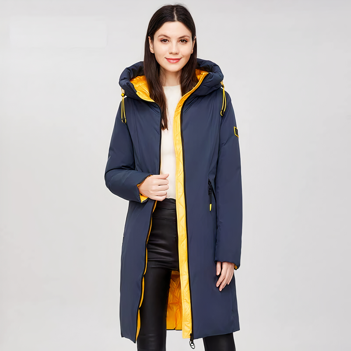 Diese marineblaue Parka-Daunenjacke für Damen ist eine elegante und zugleich funktionelle Regenjacke. Sie ist ideal für Aktivitäten im Freien, schützt Sie vor Wind und Wetter und hält Sie gleichzeitig warm.