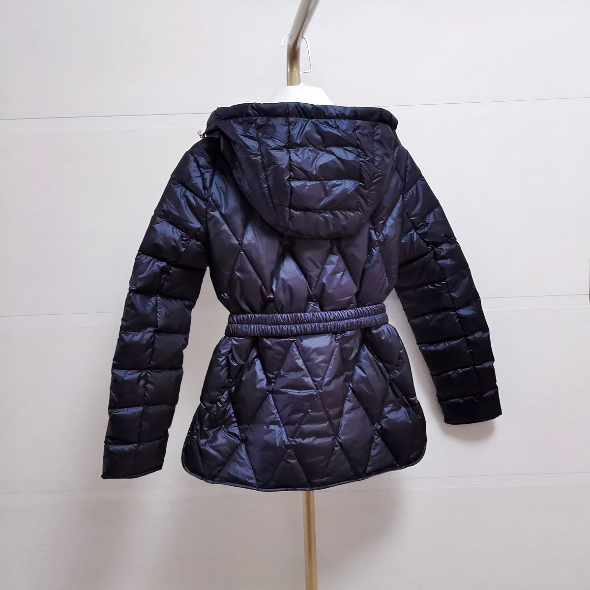 Die Daunenjacke hat einen abnehmbaren Gürtel, damit Sie die Passform anpassen können.