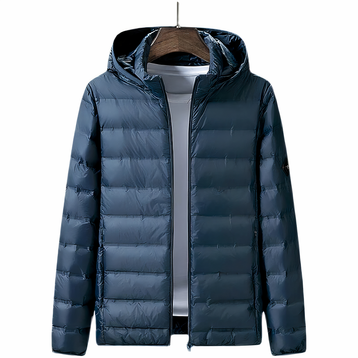 Unsere leichte Daunenjacke mit Kapuze für Herren ist ein bequemes und warmes Kleidungsstück, ideal für Männer, die gerne draußen aktiv sind.