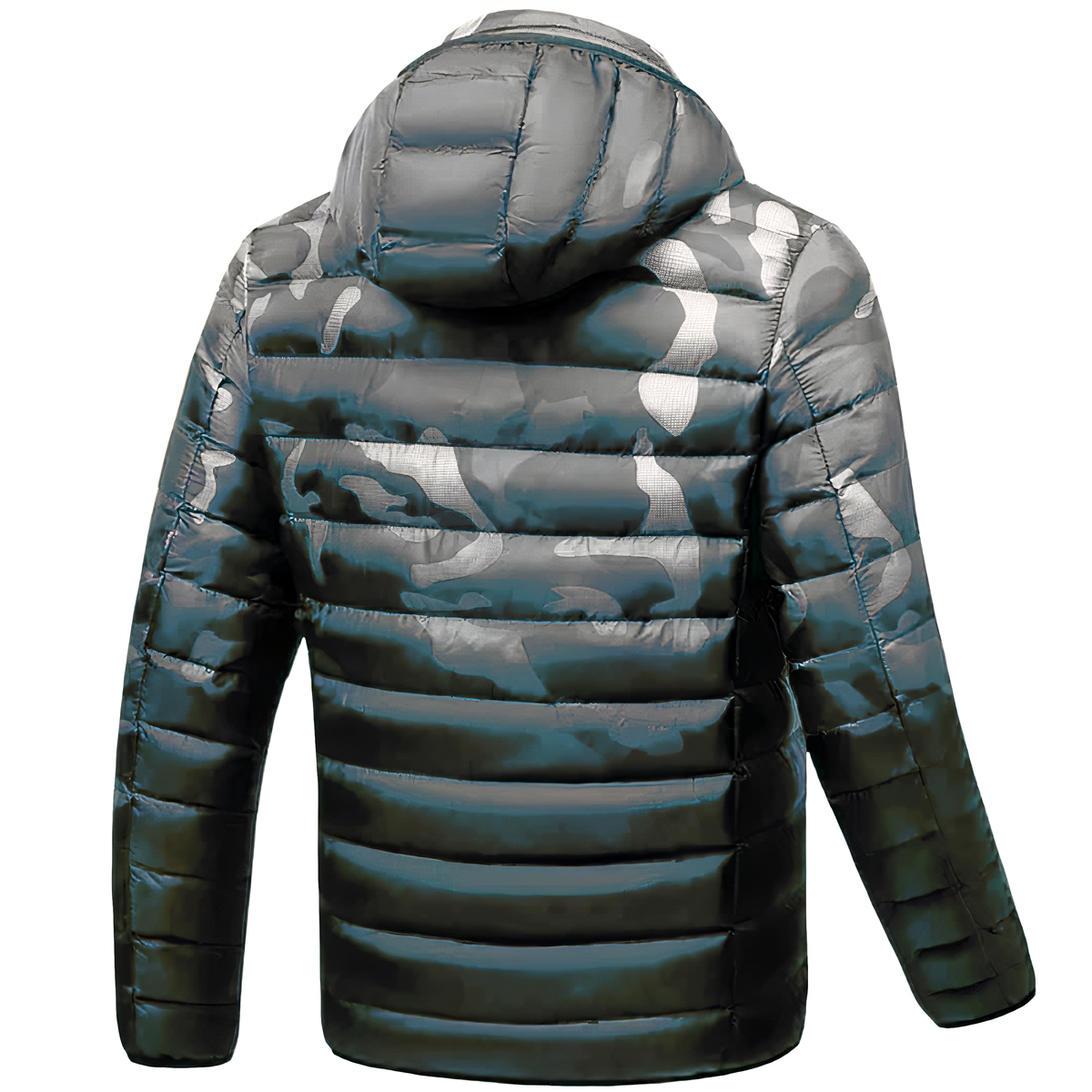 Entdecken Sie die wärmende Daunenjacke mit grauem Camouflagemuster, eine perfekte Verschmelzung von modernem Stil und winterlichem Schutz. Diese leichte und dünne Daunenjacke wurde für kühle Temperaturen bis hin zu den kältesten Tagen entwickelt und bietet eine anpassbare Wärmeleistung, die jederzeit für optimalen Komfort sorgt.