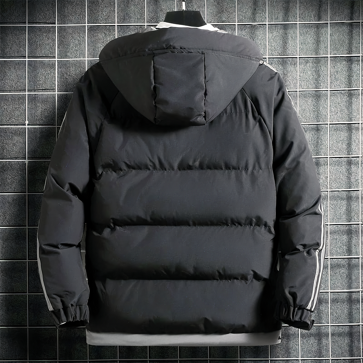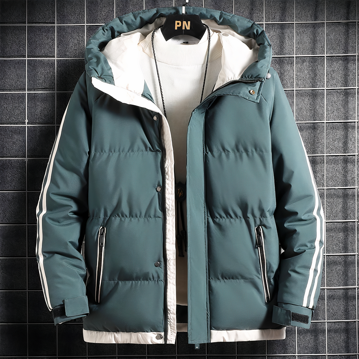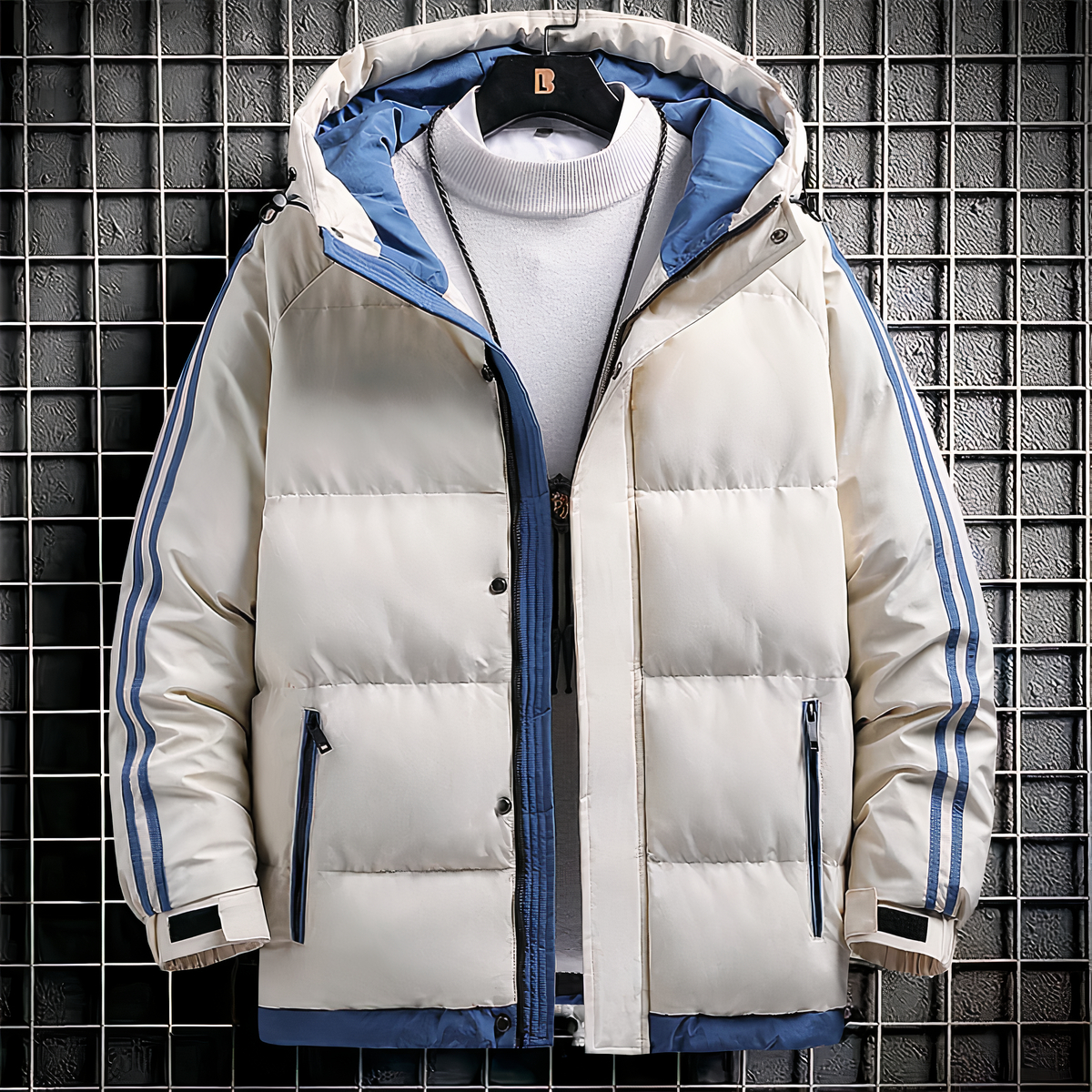 Diese warme, zweifarbige Daunenjacke für Herren ist aus hochwertigen Stoffen gefertigt, die Ihnen auch an den kältesten Tagen eine wohlige Wärme spenden.