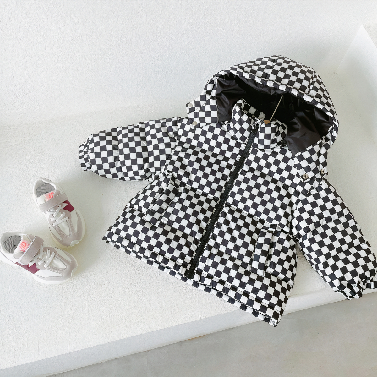 Die warme karierte Daunenjacke für Kinder ist eine ausgezeichnete Wahl, um jederzeit und überall den wichtigen Schutz vor der Kälte zu bieten!