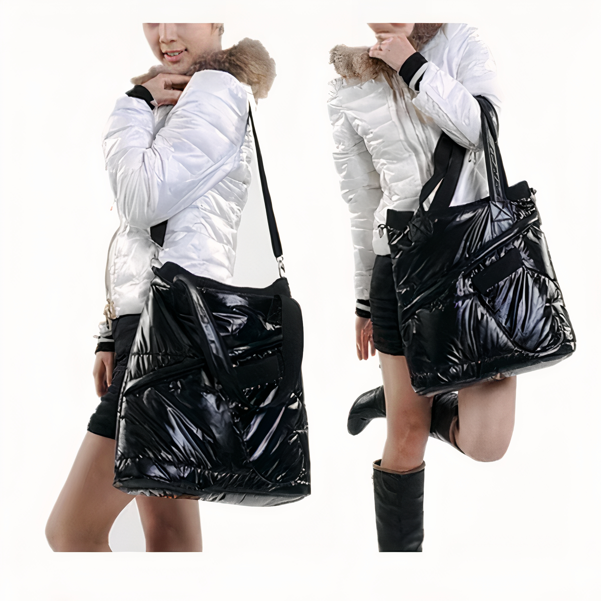 Handtasche mit Daunenjacke aus schwarzem Lack