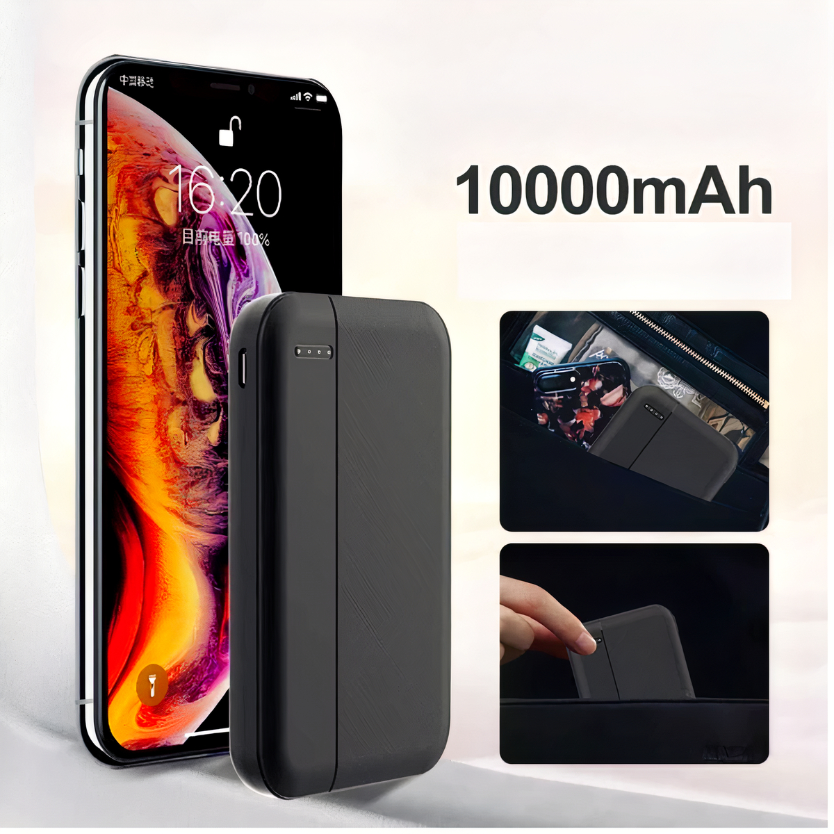 Kompakt und praktisch, diese externe Batterie ist unauffällig, wenn Sie unterwegs sind. Dank ihrer geringen Größe passt sie problemlos in Ihre Taschen oder Rucksäcke, so dass sie immer verfügbar ist.